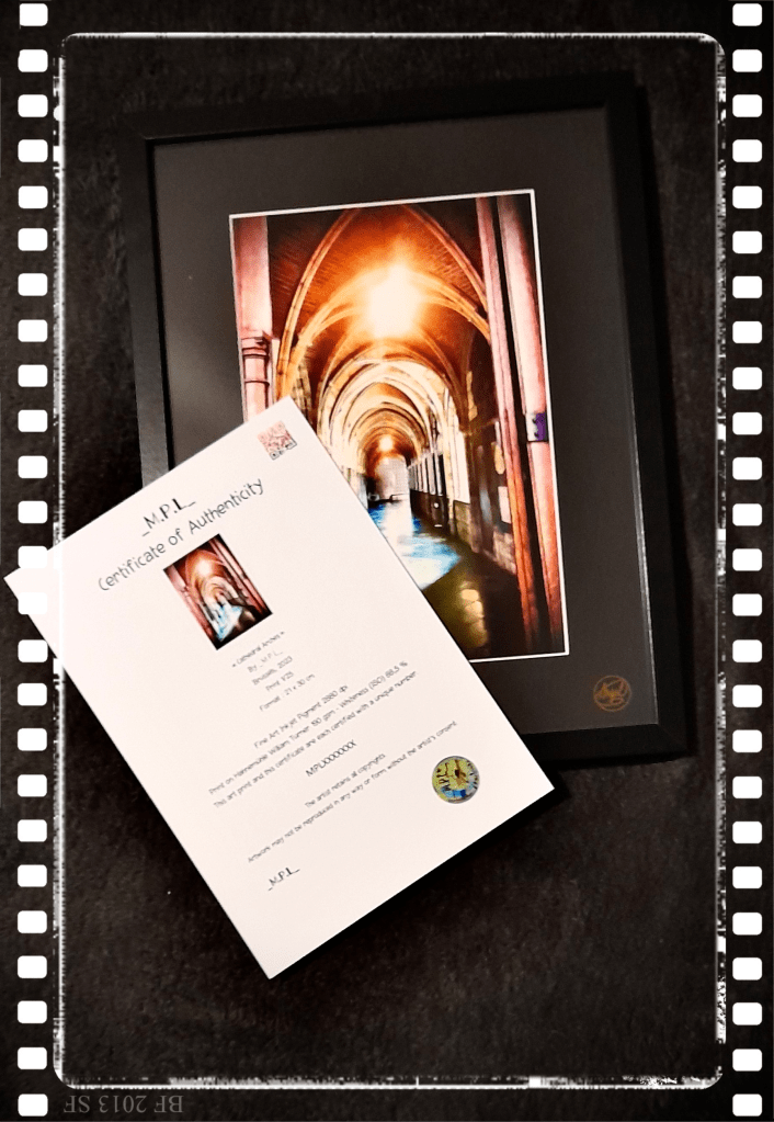 Every print is accompanied by its certificate of authenticity which includes a unique identification number for the work, its description, and its limited edition print number.